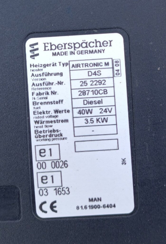 автономный отопитель eberspacher AIRTRONIC M D4S Diesel 3,5 KW 4W 24V (б/у), 80,MAN TGA-2 18.440 4x2 БЕЛЫЙ №5,26 091,